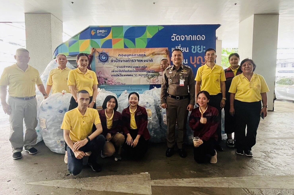 เพื่อส่งมอบให้ที่ วัดจากแดง จ.สมุทรปราการ นำไปรีไซเคิล ทอผลิตเป็นจีวร ผ้าห่ม สำหรับพระสงฆ์นำไปห่มร่างกายท่าน ถือว่าได้ร่วมบุญด้วยกัน ทั้งยังช่วยสนับสนุนนโยบายรัฐบาลลดโลกร้อนอีกทางหนึ่ง อยากขอเชิญพี่น้องข้าราชการตำรวจที่สังกัดหน่วยงานต่างๆมีที่ตั้งอยู่ภายในรั้วสำนักงานตำรวจแห่งชาติ ร่วมกันเสริมบุญด้วยกัน เพียงแต่ท่านเอาขวดพลาสติกที่ใช้แล้วมาใส่กล่องเสริมบุญ ตามสถานที่ไว้ด้านล่างนี้